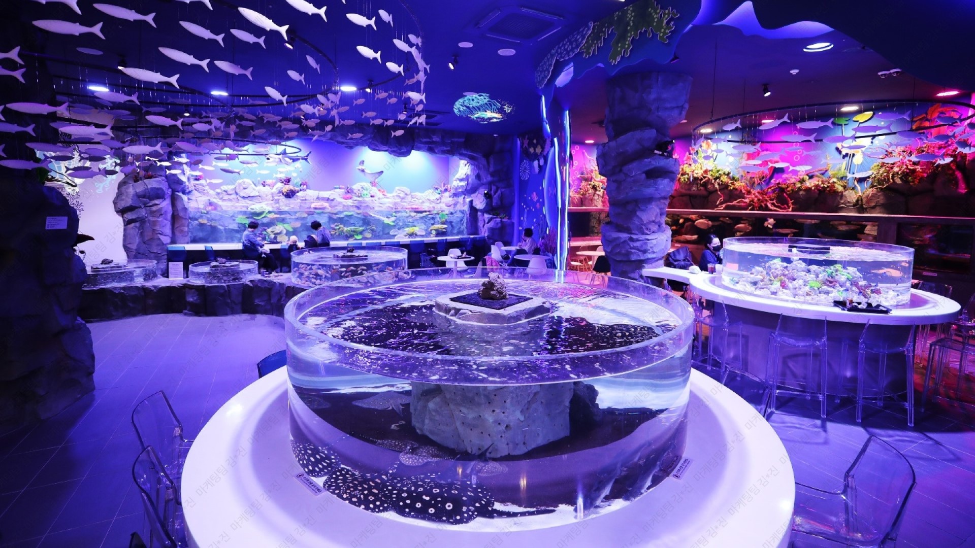 미디어를 포함한 다양한 연출기법으로 구성된 콘텐츠를 제공하는 체험형 공간 '원더래빗'과 바닷속에서 휴식을 즐기는 아쿠아카페가 함께하는 복합 힐링 시설입니다.